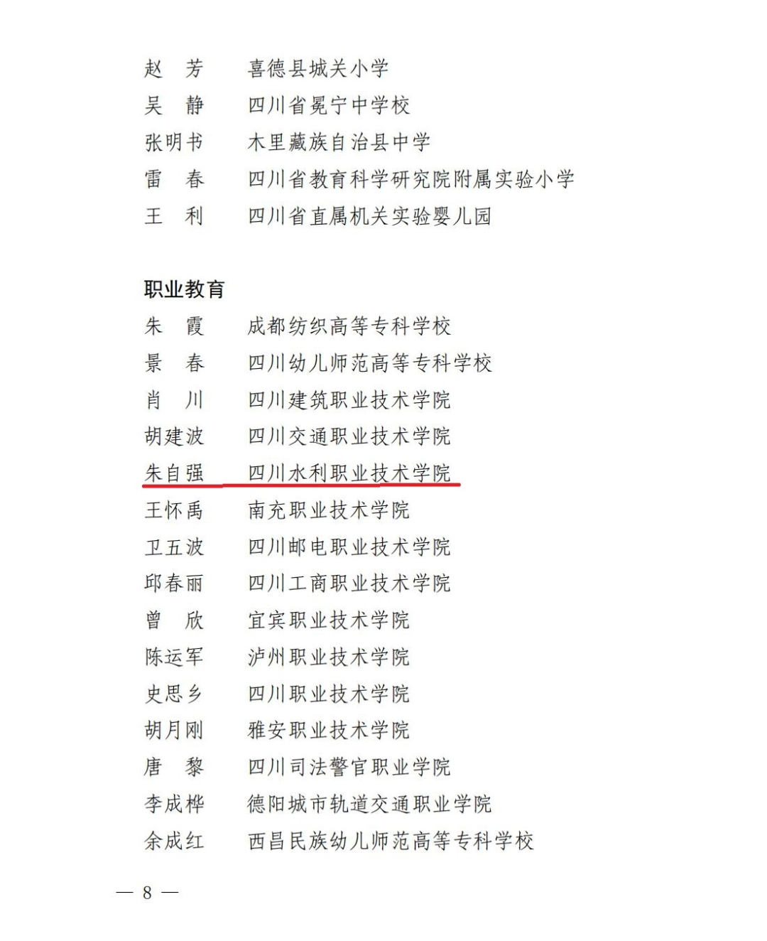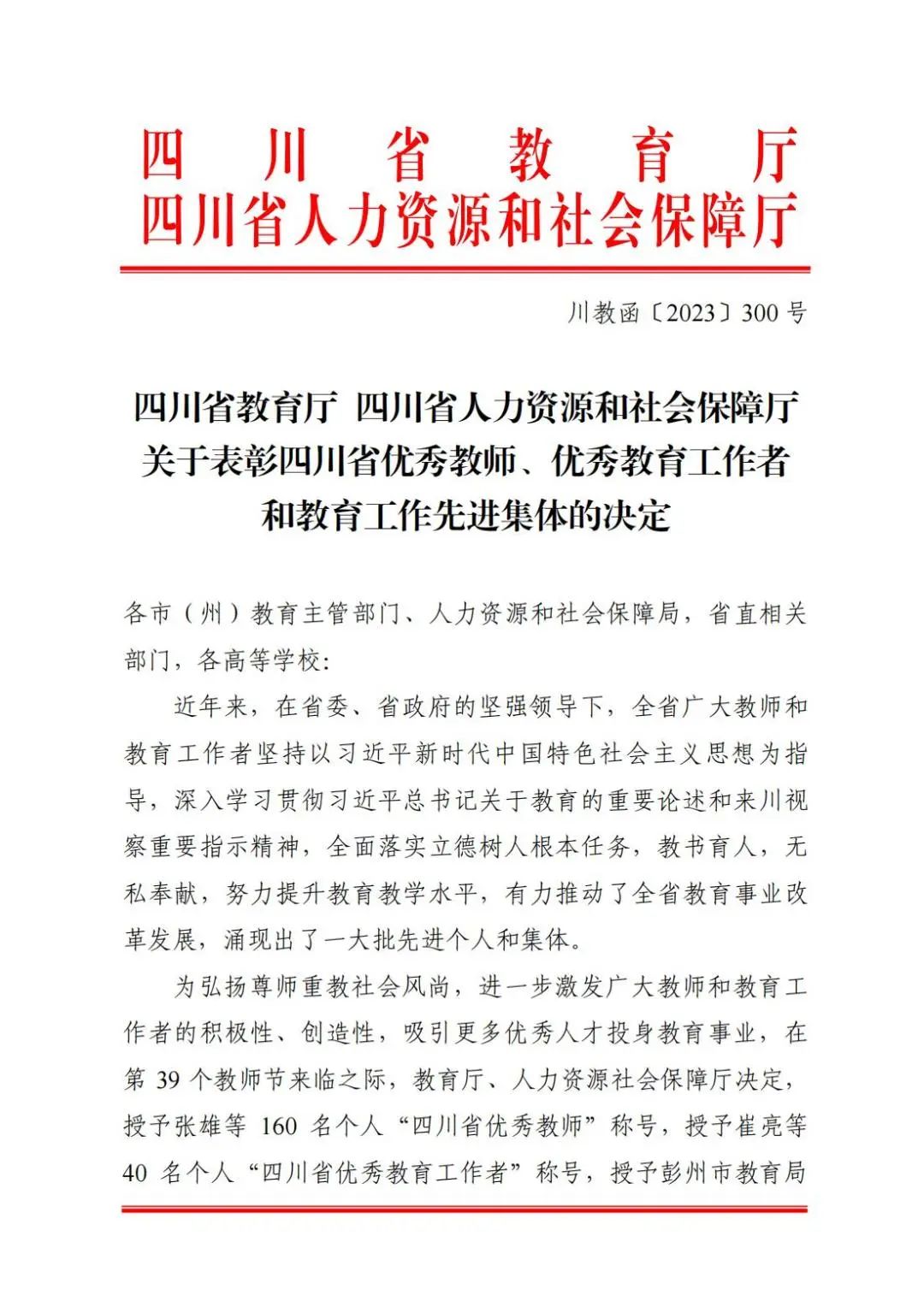 近日,四川省教育厅、四川省人力资源和社会保障厅印发《关于表彰四川省优秀教师、优秀教育工作者和教育工作先进集体的决定》,我校教师朱自强老师受到表彰,被评为四川省优秀教师。