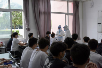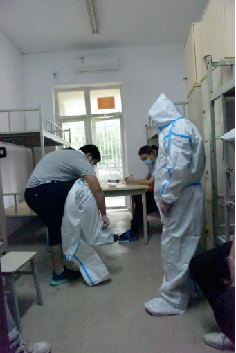 本次演练共分四个场景:一是入校人员出现体温异常,进行临时留观和应急转运处置;二是上课期间,接到属地核酸检测初筛阳性通知后的应急处置;三是学生公寓检测登记及宿舍内自测异常应急处置;四是正确穿戴隔离服演示及接诊出现体温异常人员,进行流调、留观和转运。